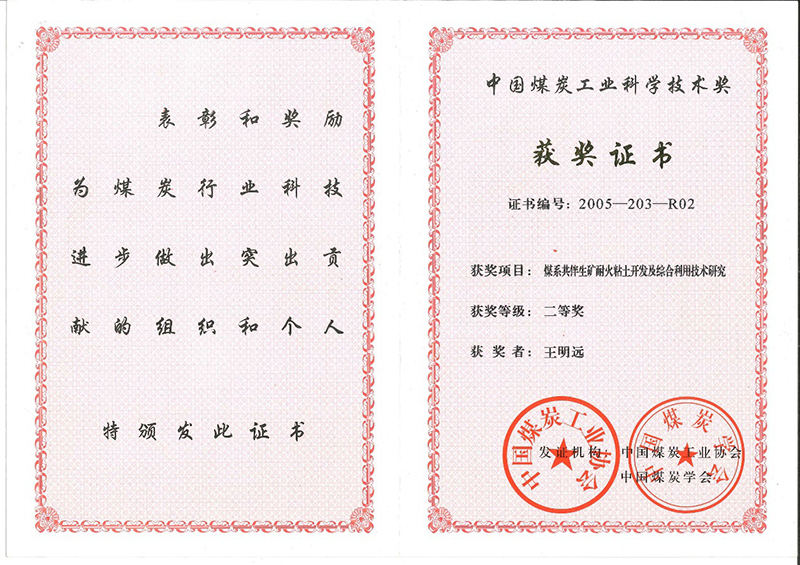 2005年中國(guó)煤炭工業(yè)科學(xué)技術(shù)二等獎(jiǎng)