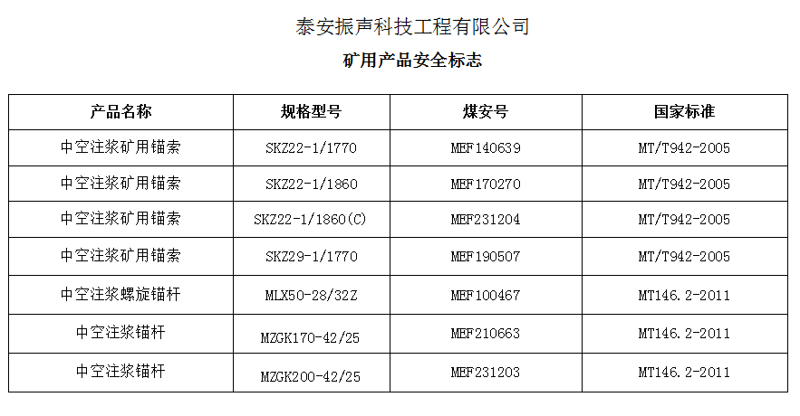 泰安振聲科技工程有限公司主營注漿錨索,中空注漿錨索,注漿錨桿,注漿添加劑等支護產(chǎn)品。