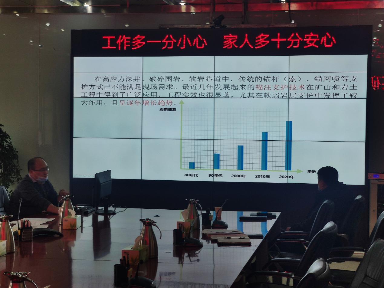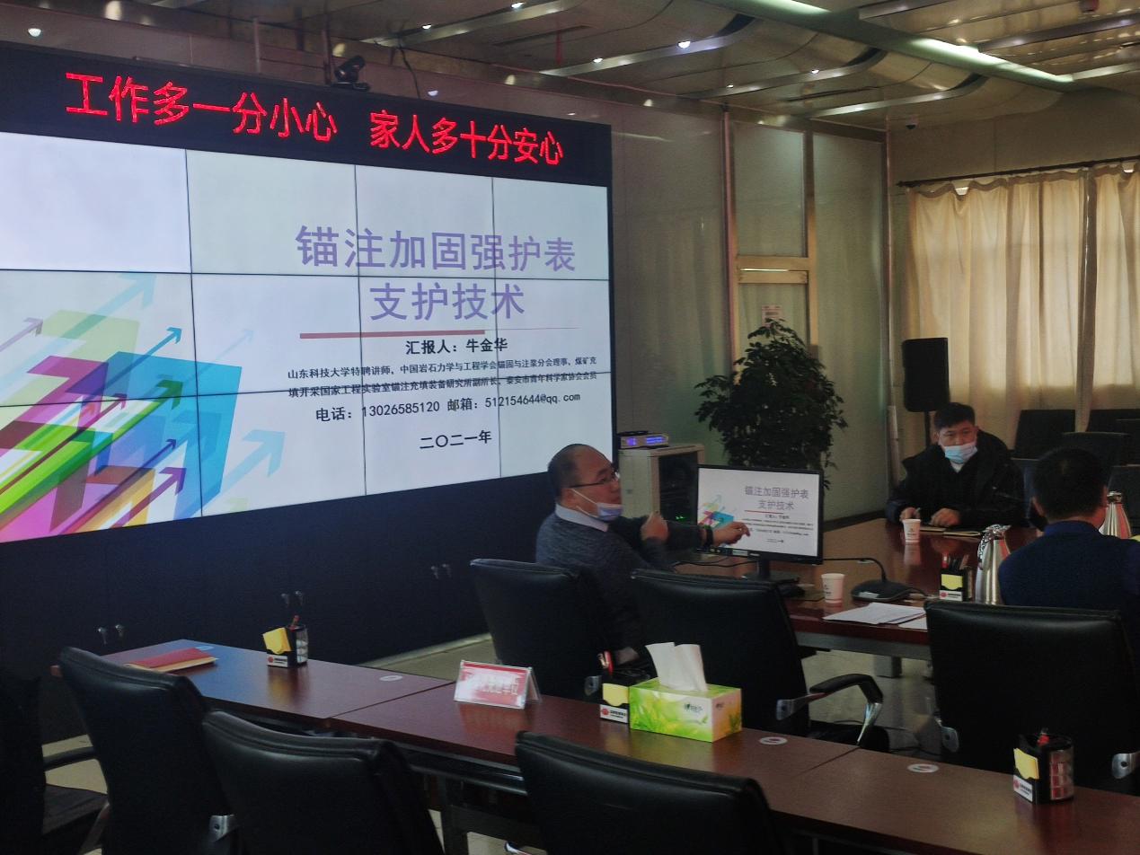 2021年1月11日,泰安振聲科技工程有限公司受邀到神東布爾臺煤礦進(jìn)行錨注加固相關(guān)培訓(xùn)和匯報,布爾臺煤礦總工程師及生產(chǎn)辦相關(guān)工程技術(shù)人員參加了培訓(xùn),公司副總經(jīng)理牛金華進(jìn)行了題為《錨注加固強護(hù)表支護(hù)技術(shù)》的授課,對錨注加固控制圍巖支護(hù)機理、中空注漿錨索和注漿加固料原理及性能、錨注加固監(jiān)測評價效果檢驗等進(jìn)行了講解。并與礦方工程技術(shù)人員一同對錨注加固技術(shù)進(jìn)行了研討,對礦方工程技術(shù)人員提出的相關(guān)問題進(jìn)行了認(rèn)真答疑,礦方領(lǐng)導(dǎo)對42108工作面錨注加固試驗段支護(hù)效果給予了充分肯定。